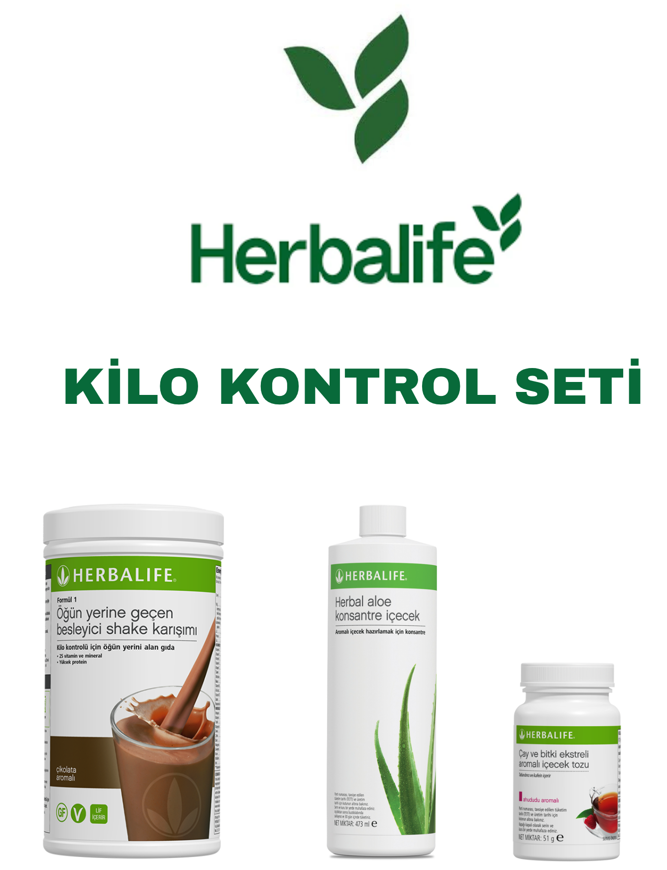Herbalife Kilo Kontrol Seti (Çikolata aromalı shake, aloe vera, ahududulu çay)